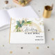 Gorgeous wedding guest book with gold spheres and a green leaf botanical design that exudes pure elegance. Easy to update text on the front holds your names and the spine holds the date and location of your special event.