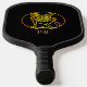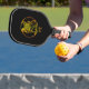 Pickleball paddle features round gold sphinx and customisable text on black background. Personalise with name or monogram