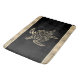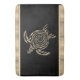A golden spiral turtle with small gold circle in a mosaic pattern on a black backdrop for contrast combining a golden illuminating edging to tie it all in. Stylish sleek vibes