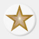 Modern design with a shining, sparkling gold and white star on a white background. Fridge magnet with a gold and white customizable design for you to personalise with your own text, images and ideas. Created by Jess Perry using original photographs and digital techniques.