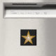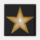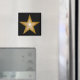 Modern design with a shining, sparkling gold and white star on a black background. Fridge magnet with a gold, black and white customisable design for you to personalise with your own text, images and ideas. Created by Jess Perry using original photographs and digital techniques.