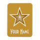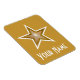 Modern design with a "shining" gold and white star on a dark yellow background. Fridge magnet with a customisable design for you to personalise with your own text, images and ideas. Please note that this is a printed image created using original photographs and digital techniques, it does not shine or contain real sparkles.
