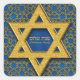 Gold Star of David Blue Hebrew Shabbat Shalom Square Sticker