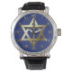 Gold Star of David with brown cross and gold roman numeral numbers. Template name created for you. Blue textured background.
