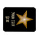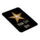 Modern design with a "shining" gold and white star on a black background. Fridge magnet with a customisable design for you to personalise with your own text, images and ideas. Please note that this is a printed image created using original photographs and digital techniques, it does not shine or contain real sparkles.