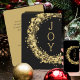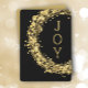 Circles and gold stars and dots on a black background surround the word "JOY" or your message on the front and your names and greeting on the back. ANY font and font color. **ADD a photo on the back along with your personalized greeting. Select Matte for heaviest paper and high definition for best print quality.