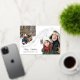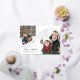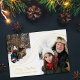 Charming Christmas card with two photos in arch-shapes adorned with gold foil strings running across the card decorated with little gold foil stars and dots.