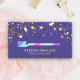 Professional dental surgeon business card featuring beautiful gold stars confetti with faux gold foil accents on a purple background. Add your name and contact details to make a lasting first impression.