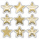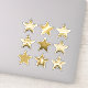 Sticker set with nine gold stars feauring various surface textures. Note that this is a printed product and not actually shiny. These fun cut out stickers are perfect for scrapbooking, journalling, gifts and decoration.