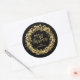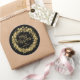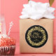 Twinkling gold stars, circles and dots surround the words "Merry Christmas" and your names on black round stickers, perfect for your holiday gift giving and more. MATCHING items in our collection.