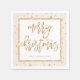 Merry Christmas paper napkins with gold foil effect (faux, printed as an image) stars and customisable blue text, where you can add your family name, printed on cream background