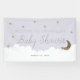 This cute gender-neutral baby shower welcome banner features a light lilac purple background with the faux gold crescent moon, faux gold glitter stars and white fluffy clouds. Personalise it for your needs. You can find matching products at my store.