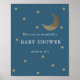 This cute gender neutral baby shower welcome sign poster features navy blue / midnight blue background with faux gold glitter stars and the crescet moon. Change the background colour and personalise it for your needs. You can find matching products at my store.