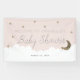 This cute girl baby shower welcome banner features a blush pink background with the faux gold crescent moon, faux gold glitter stars and white fluffy clouds. Personalise it for your needs. You can find matching products at my store.