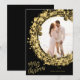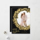 Gold circles, stars and dots wreath on a black background surround your favourite photo with your names and Merry Christmas greeting in chic lettering, a beautiful way to send holiday cheer. Select Matte for heaviest paper and high definition for best print quality.
