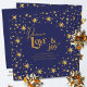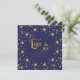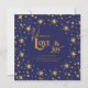 Gold Stars Peace Love and Joy Simple Elegant Blue Holiday Card