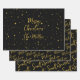 Wrap your gifts with sparkle and joy using this luxurious 3-sheet Gold Stars & Sparkles Black Wrapping Paper Set. Each sheet is designed with a elegant black backdrop and elegant gold script typography, making every present shine: