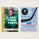 Create your own customisable hockey trading card by adding your own photo and hockey stats. The back of the card features ice marked by skate blade as a background, along with a black hockey stick. 100 cards per pack which leaves you enough to hand out to friends and relatives as keepsake momentoes (grandparents will love it), or for your minor league hockey player to trade with his teammates if they also have their own customised set. For best results, use a square photo when adding image to back of card.