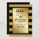 A modern black and gold glitter striped surprise 30th birthday dinner party invitation.