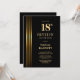 Invite your friends and loved ones to your birthday celebration with this modern gold striped black 18th birthday party invitation. The customizable text area in this invitation template allows you to include all the necessary details for your special birthday celebration, including the date, time, venue, and RSVP information. A variety of paper types and corner styles are available for your unique invitations, along with the option to download if you prefer a digital format.
