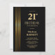 Gold Striped Black 21st Birthday Party Invitation