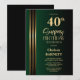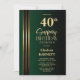 Gold Striped Black Green 40th Surprise Birthday Invitation