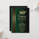 Gold Striped Black Green 80th Surprise Birthday Invitation