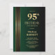 Invite your friends and loved ones to your birthday celebration with this modern gold striped black and green 95th birthday party invitation. The customizable text area in this invitation template allows you to include all the necessary details for your special birthday celebration, including the date, time, venue, and RSVP information. A variety of paper types and corner styles are available for your unique invitations, along with the option to download if you prefer a digital format.