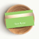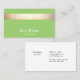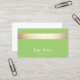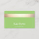 Elegant business card design featuring horizontal gold FAUX foil stripe on green background. This is NOT real gold foil - but an image. There is no shine or texture.