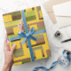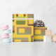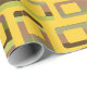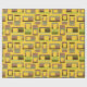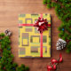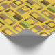 This wrapping paper has a mid-century modern design of rounded rectangles in shades of green and brown with holes in them on a field of gold. If you like the design but prefer different colours, message me.