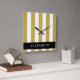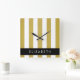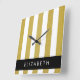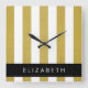 Gold Stripes, Striped Pattern, Lines, Your Name Square Wall Clock