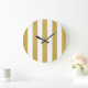 Gold Stripes, White Stripes, Striped Pattern Large Clock
