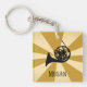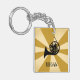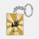 Show off your love of the french horn with this bold and fun design! This personalised gold sunburst french horn silhouette keychain makes a great gift for music teachers, musicians, music students, and music lovers alike. A great personalised keychain for holding keys for the home, work office, music classroom, music studio and music school. Great gifts for band or orchestra teachers and french horn students. Customise and personalise by adding the name of the gift recipient or your own name and enjoy!