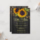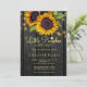 Rustic country LITTLE PUMPKIN ON THE WAY baby shower stylish invitation template on dark brown barn wood background featuring big yellow gold sunflowers bouquets, strings of twinkle lights and a faux gold typography script. +++++++++++++++ Easy to personalise with your details! You can choose to customise it further changing fonts and colours of lettering. ++++++++++++ The invitation is suitable for summer or autumn fall outdoor garden / backyard rustic country brunch / barbecue baby girl or boy shower / gender reveal.