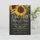 A rustic country I DO BBQ wedding rehearsal dinner stylish invitation template on dark brown barn wood background featuring big yellow gold sunflowers bouquets, strings of twinkle lights and a faux gold typography script. +++++++++++++++ Easy to personalise with your details! You can choose to customise it further changing fonts and colours of lettering. ++++++++++++ The invitation is suitable for outdoor garden / backyard rustic country bbq / barbecue summer or autumn fall couple parties.