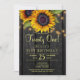 Rustic country twenty first birthday party stylish invitation template on dark brown barn wood background featuring big yellow gold sunflowers bouquets, strings of twinkle lights and a faux gold typography script. +++++++++++++++ Easy to personalise with your details! You can choose to customise it further changing fonts and colours of lettering. ++++++++++++ The invitation is suitable for outdoor garden / backyard rustic country brunch / barbecue summer or autumn fall milestone birthday parties