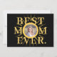 Yellow sun with sparkling sunshine Mother's Day custom 3 photos personalised Best Mum Ever black greeting card with faux gold bold typography and a handwriting style calligraphy script text and signature. Easy to personalise on both sides!