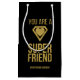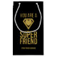 A faux simulated gold foil "Super Friend" design. Personalise the custom text above. You can find additional coordinating items in our "Gold Superhero Friend" collection.