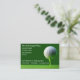 Training and golf supply business cards in a simple custom design template with graphic of a golf ball on a golf tee and simple layout you can customise online.
