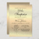 Luxury, elegant black and gold surprise 50th birthday invitation with unique, sophisticated rose flower art drawing.