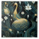 This ceramic tile features a design of gold swans in a field with white flowers and leaves. The colour scheme of dark grey and light emerald creates a striking contrast. The design is influenced by ancient Chinese art, with fanciful illustrations and flowing lines. The pattern is seamless and repeatable, making it perfect for creating a continuous design on a wall or floor.