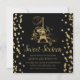 Gold Sweet Sixteen Paris Glitter Confetti Black Invitation