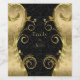 Modern monogrammed black and gold floral damask with gold floral swirl