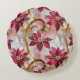 Gold Swirls Burgundy Pink Christmas Poinsettias Round Cushion
