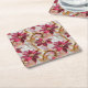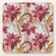 Gold Swirls Burgundy Pink Christmas Poinsettias Square Paper Coaster