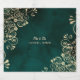 It features an emerald green background with frilly and ornate faux foil gold filigree and chic script lettering.