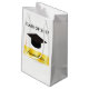 Design for graduation ceremony, with gold tag for customisable name text. Customisable background colour. Customisable text.