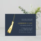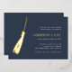 Celebrate their big milestone with these chic foil invitations that are perfect for a graduation celebration. Luxe design features the graduate's name and a grad cap tassel illustration in elegant gold foil on a navy blue background. Personalise with your party details aligned at the right in modern white lettering. An elegant and upscale choice for fabulous grad parties!