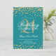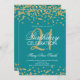 Gold Teal Blue Glitter Confetti 21st Birthday Invitation