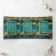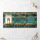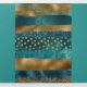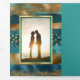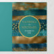 Gold and teal blue strokes and confetti tri-fold wedding program. This beautiful design features brush strokes in teal and gold and confetti. Your text is in a teal frame with gold border. It is perfect for a fall or winter wedding.